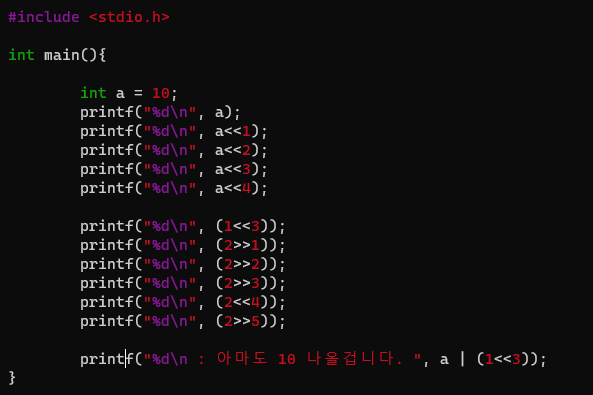 << 연산자의 경우는 해당 비트값을 왼쪽으로 숫자만큼 이동 시켜준다고 생각하면된다.