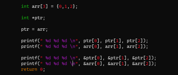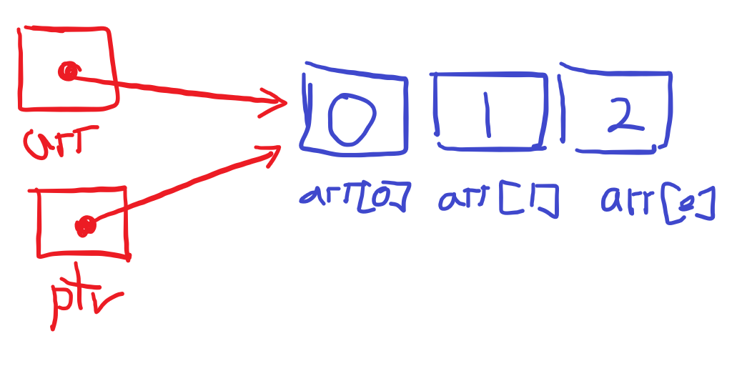 arr ==> 주소를 나타내고 해당 주소를 ptr에 넣어주므로