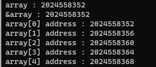 printf(" &array %d", &array); 동일하게 나타나며,