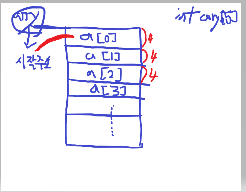 array[0] 값과 동일 하다 즉 array로 표현하면 해당 배열의 시작주소를 나타내는 것이다.