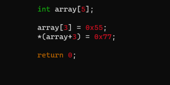 *(array+3) = 0x77 == array[3] = 0x77 동일 == array+3 의 값을 주소로 보고 해당 주소로 가서 값을 0x77로 바꿔라
