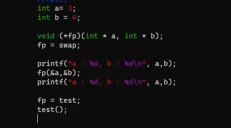 void (*fp)(int * a, int * b); 로 매개변수가 있는 함수형 포인터를 선언하고