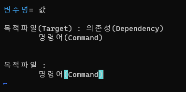 명령어는 : 해당 목적파일을 생성하기 위한 명령어를 넣어준다.