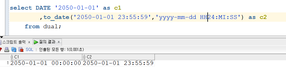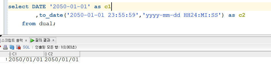 날짜 표기방법은 NLS 파라미터 설정에 따라 출력 포맷이 달라진다.