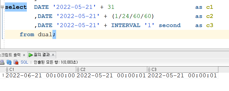 * 월계산은 ADD_MONTHS( DATE, 숫자)를 통해서 수행되며, DATE 날짜에서 숫자만큼 증가 된다.