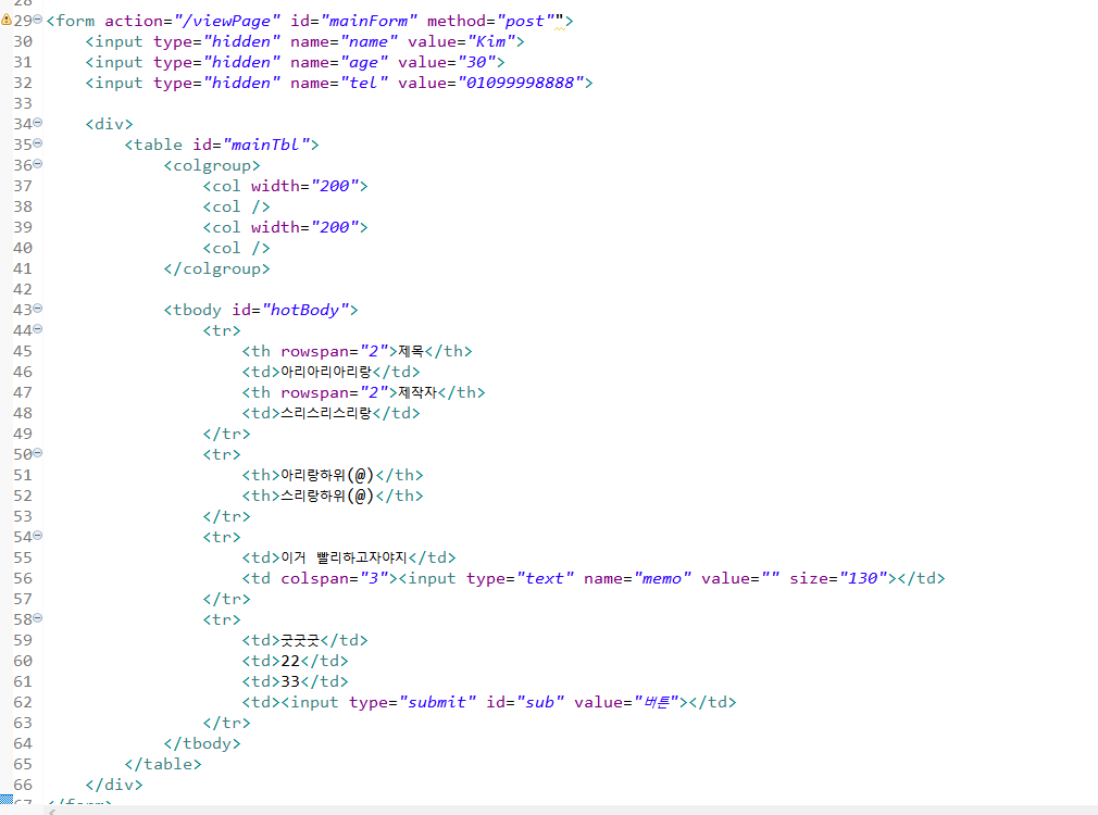 여기서 jsp Page 에서 Controller로 데이터를 전송할때 Controller에서