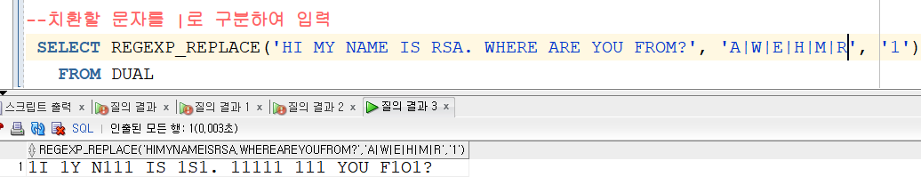 중복 replace의 정규표현식 REGEXP_REPLACE( char, (search_String1|search_String2 등...), [replace_String])