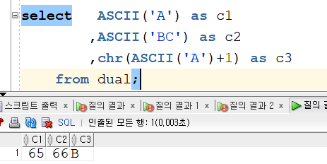 1) CHR(n) : n에 해당하는 데이터베이스 캐릭터 셋의 문자값을 반환한다.