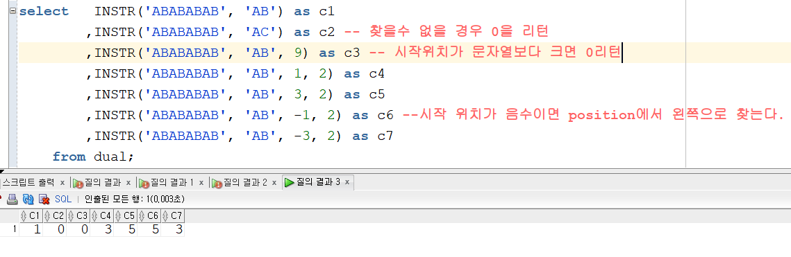 11. instr(string, substring, [position], [occuurence]) : string에서 substring의 시작위치를 반환하는 함수로
