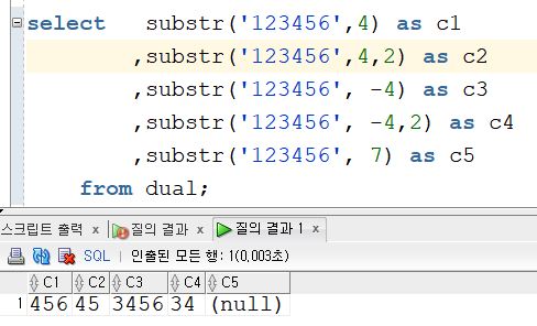 7) substr(char, 숫자(위치), [갯수]) : char를 숫자(위치) 부터 끝까지 나타낸다, 또는 위치부터 갯수만큼 나타낸다.