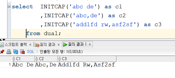 4) INITCAP(char) : 첫글자는 대문자, 나머지는 소문자로 표현