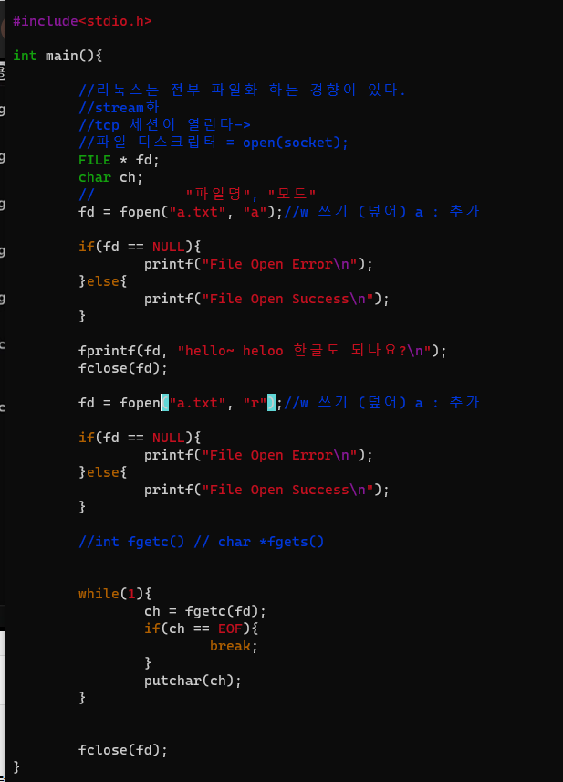 - 사용되는 함수는 읽기(fread() 등..) 쓰기 (fprintf() 등..)