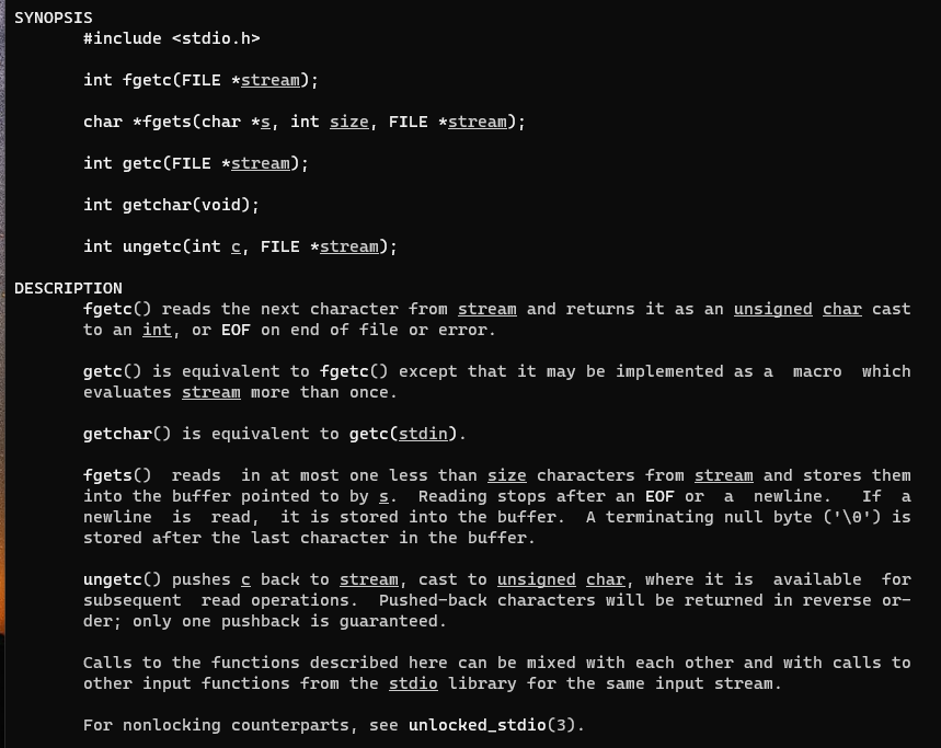 getchar() 함수의 경우는 입력대기상태로 있다가 키보드로 부터 입력을 받으면 1문자가 c에 저장되고