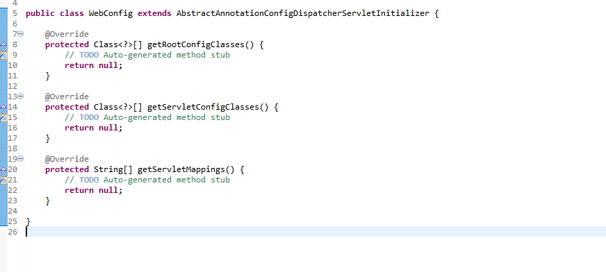 getRootConfigClasses() 는 root-context.xml 를 대신하는 메서드 인데. 여기서는 RootConfig 를 사용할 것이므로, RootConfig.class를 return해준다,