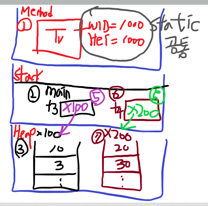 클래스 변수(cv) | 클래스 영역 | 클래스가 메모리에 올라갈 때 |