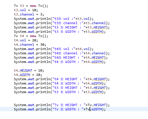 인스턴스 변수의 경우는 각각의 인스턴스마다 다르게 설정하여 사용할 수 있으나