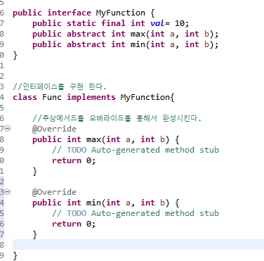 현재 Func 클래스가 MyFunction 인터페이스의 추상 메서드중 1개만 구현 하고 나머지