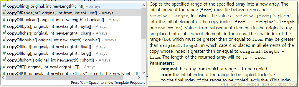 다른 사람의 풀이를 보면 copyOfRange 라는 함수를 사용하였는데 딱 문제의 처음보고나서
